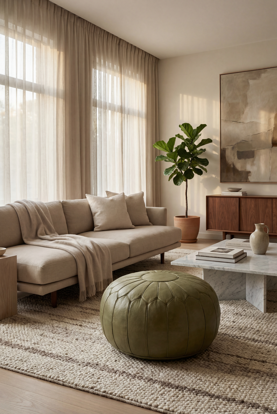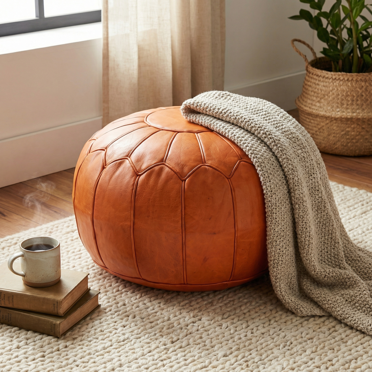 "This pouf completely transformed my living room. The leather is incredibly soft and the color is even more beautiful in person. Worth every penny."